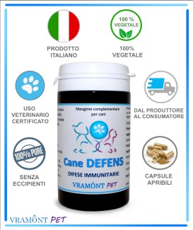 Cane DEFENS viene realizzato dai Laboratori Vramont utilizzando gli estratti PURI di Astragalo, Echinacea, Rosa canina, Eleuterococco, Ribes nero e Shiitake utili che possono essere utili per rimettere in sesto le difese immunitarie dell'animale. La totale assenza di eccipienti lo rende PURO AL 100% e la sua formulazione è studiata appositamente per uno specifico uso veterinario.